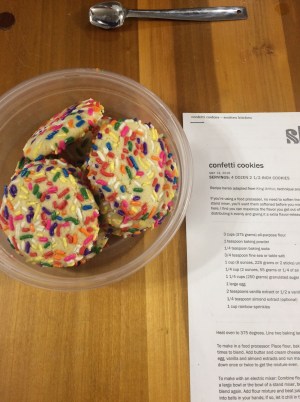 Smitten Kitchen’s Confetti Cookies are happiness cookies.  That is all I have to say about that.  Other than to add you should definitely go make them.  But only if you’re going to buy fresh jimmies and not use some old jar you’ve had sitting around forever since you bought them to throw a spoonful on some ice cream sundae.  FRESH JIMMIES or don’t even bother.  If you taste them and they taste like nothing but stiff old wax?  THROW THEM OUT and go buy new ones.  If you can’t remember when or why you bought them? THROW THEM OUT and go buy new ones.  Besides, this recipe uses a lot of them.  You probably need more anyway.  Buy the bigger jar.